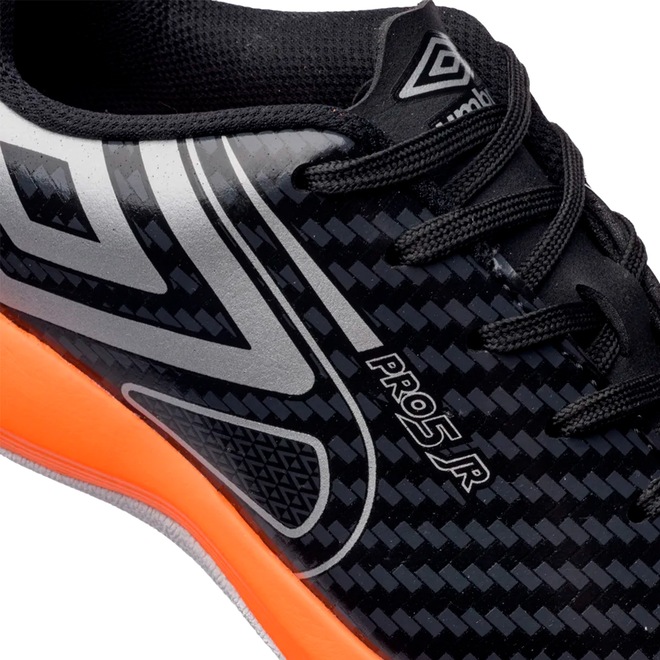 A Chuteira Futsal Infantil Umbro Pro 5 Bump JR foi criada para os pequenos craques que estão começando nas quadras. Equipada com a tecnologia BUMP, que combina palmilha e entressola em EVA, garante amortecimento eficaz e retorno de energia a cada movimento. Seu cabedal em material sintético leve e resistente proporciona toque preciso de bola e excelente durabilidade. O solado em borracha antiderrapante com entressola em EVA assegura aderência reforçada e estabilidade em giros e mudanças rápidas de direção. Com lingueta tradicional, grafismo moderno e o diamante Umbro na lateral, entrega estilo e desempenho para a garotada.