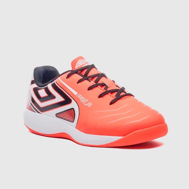 A Chuteira Futsal Umbro Pro 5 Jr combina conforto e qualidade para os jovens jogadores que buscam evolução nas quadras. O cabedal assimétrico em material laminado emborrachado conta com grafismo personalizado, sistema de lingueta tradicional e o autêntico Diamante Umbro aplicado em serigrafia na lateral. O solado de futsal possui entressola super macia em EVA de ponta a ponta e soleta em borracha antiderrapante, garantindo durabilidade e aderência.