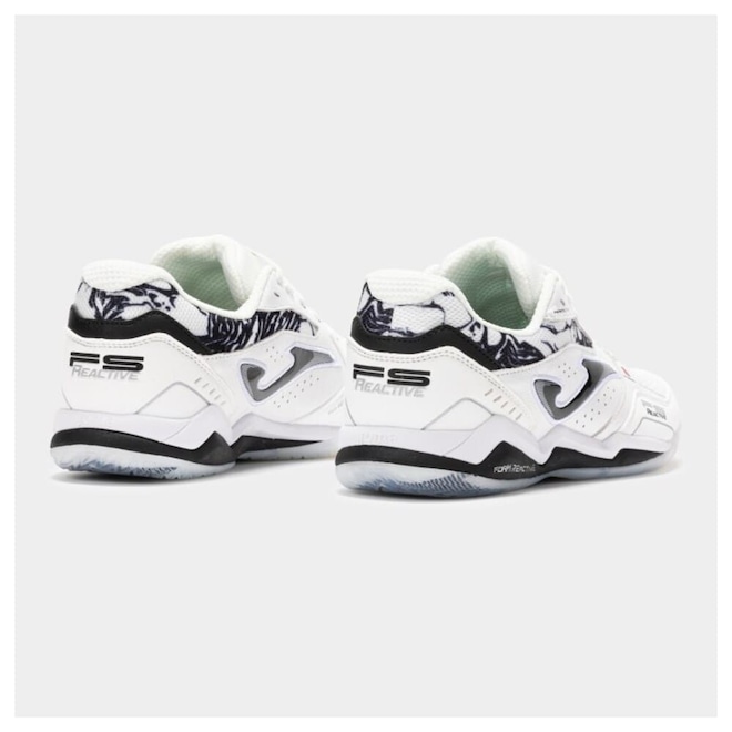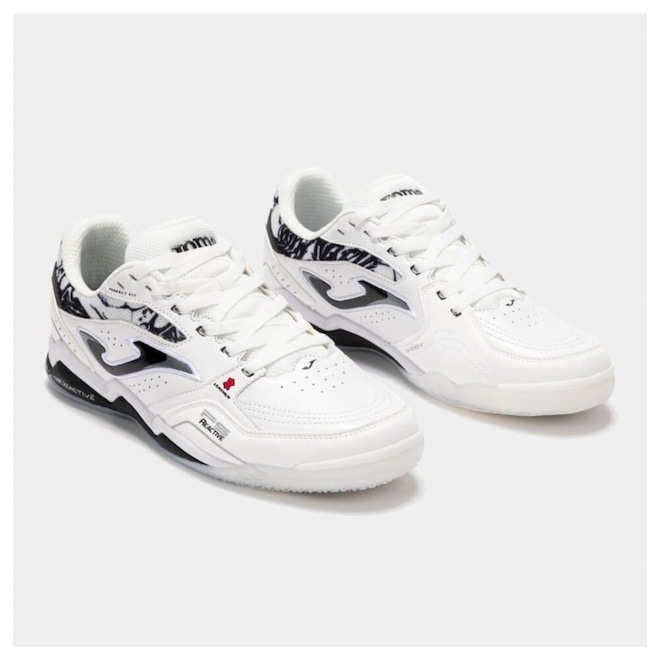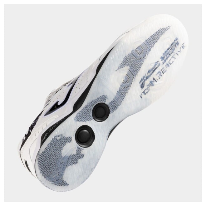 Característica Detalhe Função e Benefício Cabedal Couro com Malha Respirável Oferece a durabilidade do couro combinada com a ventilação necessária para o conforto durante o jogo. Amortecimento Entressola em Phylon com tecnologia FOAM REACTIVE Proporciona um amortecimento leve e responsivo, absorvendo o impacto e oferecendo reatividade para movimentos rápidos. Solado Borracha DURABILITY Solado sem marcação (non-marking), específico para pavilhão. Garante durabilidade e aderência correta sem danificar a quadra. Proteção Reforço de PROTECTION Aumenta a resistência do calçado na área de maior desgaste. Design Branco com o "J" da Joma em preto. Sola em design multicolorido. Visual marcante e moderno. Fechamento Atacadores (Cadarços) Permite um ajuste firme e personalizado. Medidas Aproximadas (Comprimento da Palmilha)