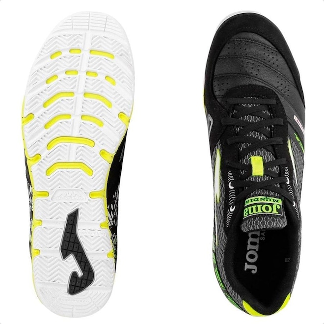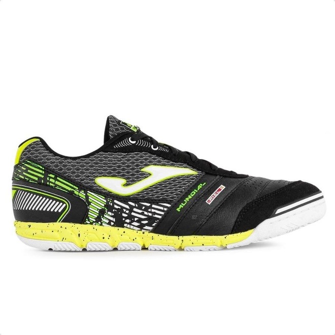 Maximize sua performance com a Chuteira de Futsal Joma Mundial Adulto. Com um cabedal sintético resistente e solado emborrachado, oferece excelente aderência e durabilidade em quadra. O design com cadarço proporciona um ajuste seguro, enquanto a palmilha forrada garante conforto durante todo o jogo. O reforço acolchoado oferece suporte adicional, permitindo movimentos ágeis e precisos. Equipada com diversas tecnologias:
