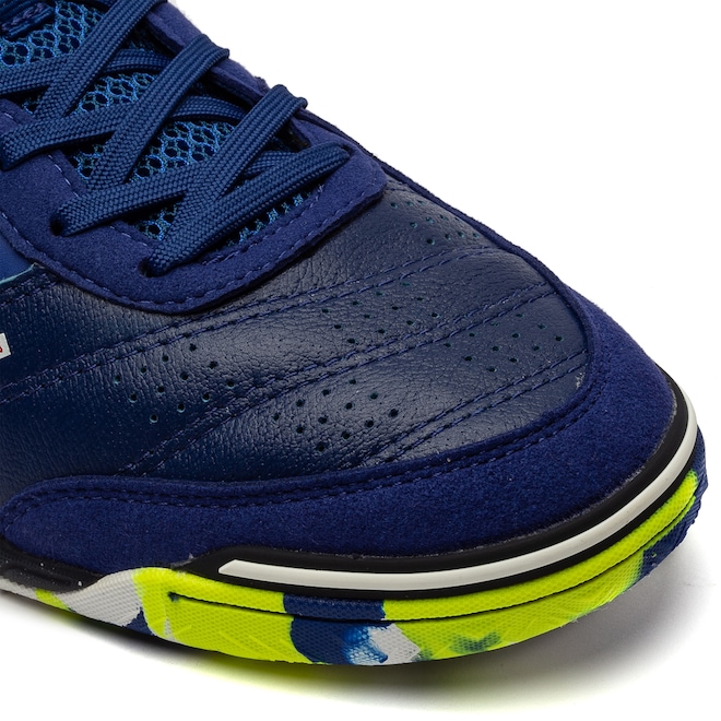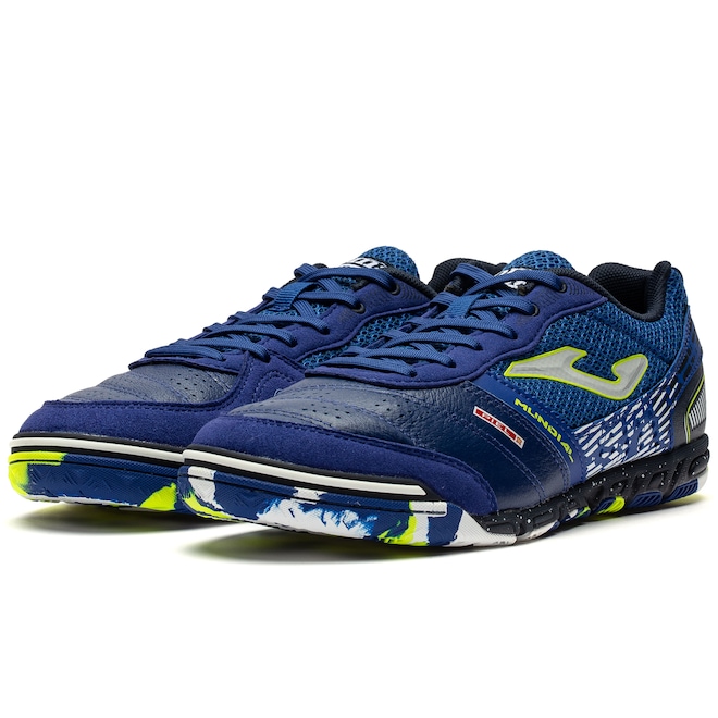 Maximize sua performance com a Chuteira de Futsal Joma Mundial Adulto. Com um cabedal sintético resistente e solado emborrachado, oferece excelente aderência e durabilidade em quadra. O design com cadarço proporciona um ajuste seguro, enquanto a palmilha forrada garante conforto durante todo o jogo. O reforço acolchoado oferece suporte adicional, permitindo movimentos ágeis e precisos. Equipada com diversas tecnologias: