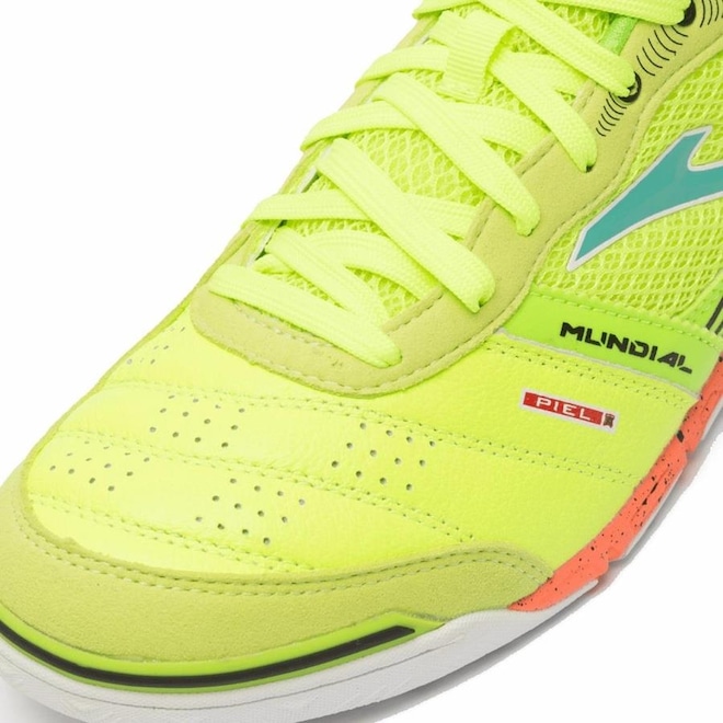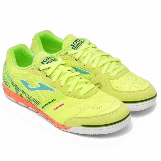 Maximize sua performance com a Chuteira de Futsal Joma Mundial Adulto. Com um cabedal sintético resistente e solado emborrachado, oferece excelente aderência e durabilidade em quadra. O design com cadarço proporciona um ajuste seguro, enquanto a palmilha forrada garante conforto durante todo o jogo. O reforço acolchoado oferece suporte adicional, permitindo movimentos ágeis e precisos. Equipada com diversas tecnologias:
