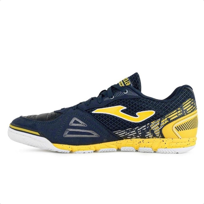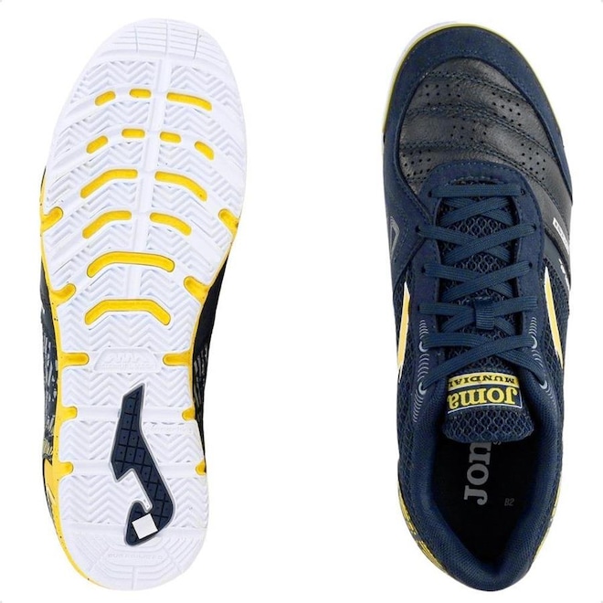 Maximize sua performance com a Chuteira de Futsal Joma Mundial Adulto. Com um cabedal sintético resistente e solado emborrachado, oferece excelente aderência e durabilidade em quadra. O design com cadarço proporciona um ajuste seguro, enquanto a palmilha forrada garante conforto durante todo o jogo. O reforço acolchoado oferece suporte adicional, permitindo movimentos ágeis e precisos. Equipada com diversas tecnologias: