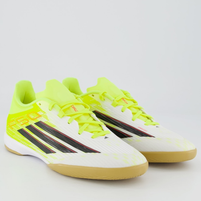 Tecnologia Non-Marking: Oferece tração para as jogadas nas quadras e não deixa marcas no solo. Fiberskin: Material sintético leve com impressões texturizadas que otimizam o contato com a bola, oferecendo maior controle e durabilidade. Composição cabedal (parte superior): Material sintético com biqueira em camurça Palmilha: Em EVA forrado e removível; facilita na higienização Solado: Borracha antiderrapante, colado Forro: Material têxtil acolchoado Entressola: EVA resistente Cor predominante: Verde Lingueta: Fina e flexível Indicado para: Futsal Origem: Importada Gênero: Masculino Ajuste: Cadarço Peso aproximado: 500g o par n° 40