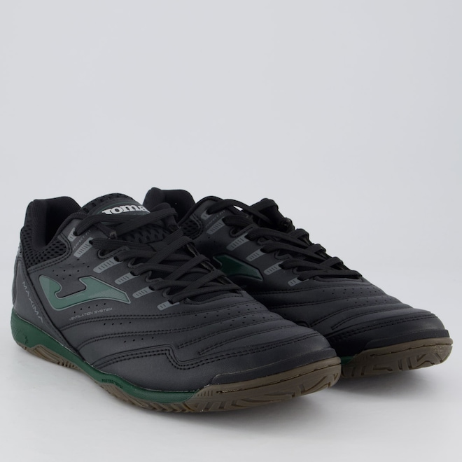 Tecnologias Durabilidad: Maior durabilidade da sola exterior graças à borracha altamente resistente que reduz o desgaste causado pela abrasão, alongando a vida útil do calçado. Perfect Fit: Conjunto de costuras colocadas estrategicamente no cabedal para aumentar o conforto do pé e a precisão em cada toque na bola. VTS: Sistema de ventilação que permite a maior circulação de ar dentro do calçado mantendo a temperatura estável e minimizando o risco de lesões para o jogador. Fibertec: Material sintético leve, resistente e confortável que se assemelha ao couro oferecendo uma acomodação rápida ao pé. Flexo: Responsável por proporcionar uma melhor transição do calcanhar aos dedos, deixando suas passadas mais naturais e confortáveis. Non-Marking: Uma borracha que não marca a superfície e proporciona excelente tração. Rotation: Ponto de giro no solado para mudança de direção mais fácil e segura. Composição cabedal (parte superior): Sintético com partes em têxtil Palmilha: EVA forrado e removível; facilitando na higienização Forro: Material têxtil com acolchoamento reforçado Solado: Borracha resistente e antiderrapante, colado Lingueta: Macia e acolchoada Cor predominante: Preto Gênero: Masculino Origem: Importada Ajuste: Cadarço Peso aproximado: 630g o par n° 40