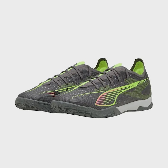 Apertem os cintos e preparem-se para jogar a todo vapor com os mais novos calçados para futebol indoor da PUMA. Cabedal em mesh leve, película GripControl e solado de borracha antimarcas garante movimentos rápidos e controle decisivo da bola. A estabilidade encontra velocidade para o seu melhor jogo em ambiente interno. STABILITY: A estrutura de suporte leve estabiliza o pé dentro da chuteira para permitir mudanças rápidas de direção. A película GripControl proporciona controle decisivo sobre a bola. Sola de borracha de baixo perfil antimarcas e entressola EVA para tração em ambientes fechados. A estrutura de suporte estabilizadora permite mudanças rápidas de direção para maior agilidade. Cabedal em mesh leve para maior respirabilidade e conforto. Película GripControl para um comando decisivo sobre a bola. Modelagem regular a estreita. IT: Sola para treino em ambientes internos.