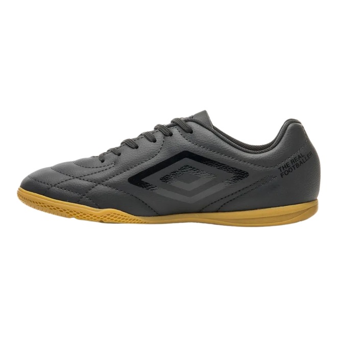 A Chuteira Futsal Umbro Class Footballer é indicada para jogadores de nível intermediário que buscam qualidade e conforto. O modelo apresenta cabedal confeccionado em material laminado com textura de couro relax, apresenta artes gráficas em serigrafia e costuras programadas em um desenho clássico. Possui palmilha interna em EVA forrada em tecido e solado de futebol indoor em borracha monocolor antiderrapante com tecnologia Hypergrip.
