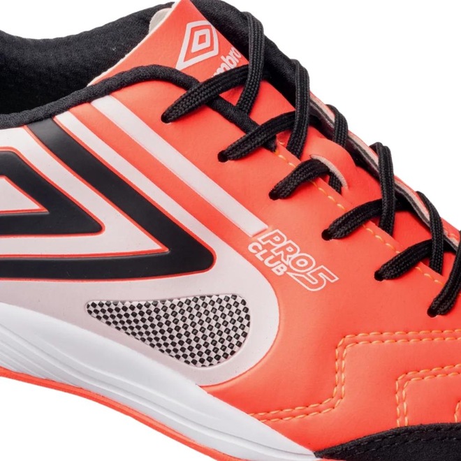 Para melhorar seu desempenho dentro das quadras, aposte na Chuteira Futsal Umbro Pro 5 Bump Club! Com cabedal confeccionado em material sintético macio e levemente texturizado, o modelo conta com interior acolchoado que oferece suporte e conforto para você se movimentar com confiança nas quadras. A tecnologia exclusiva BUMP proporciona amortecimento e retorno de energia. Além disso, o fecho em cadarço permite ajuste firme e eficaz. Esta chuteira unissex possui as tecnologias 360 Zone e Non-Marking. O solado de borracha antiderrapante proporciona mais segurança para você arriscar as melhores jogadas nas quadras cobertas e descobertas.