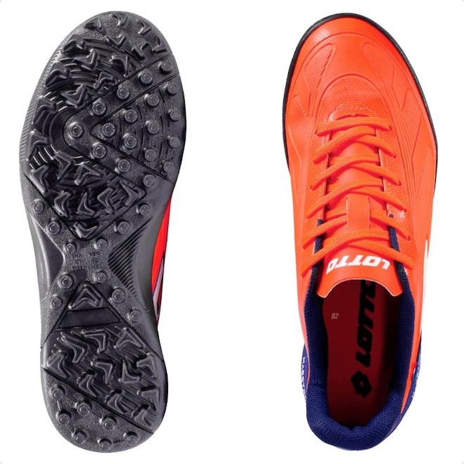 A entressola em EVA garante amortecimento leve, reduzindo o impacto nas pisadas, o que é essencial para partidas mais longas. Já o solado em borracha com travas baixas foi projetado especialmente para gramados sintéticos (society), oferecendo ótima tração, estabilidade e liberdade de movimentos.