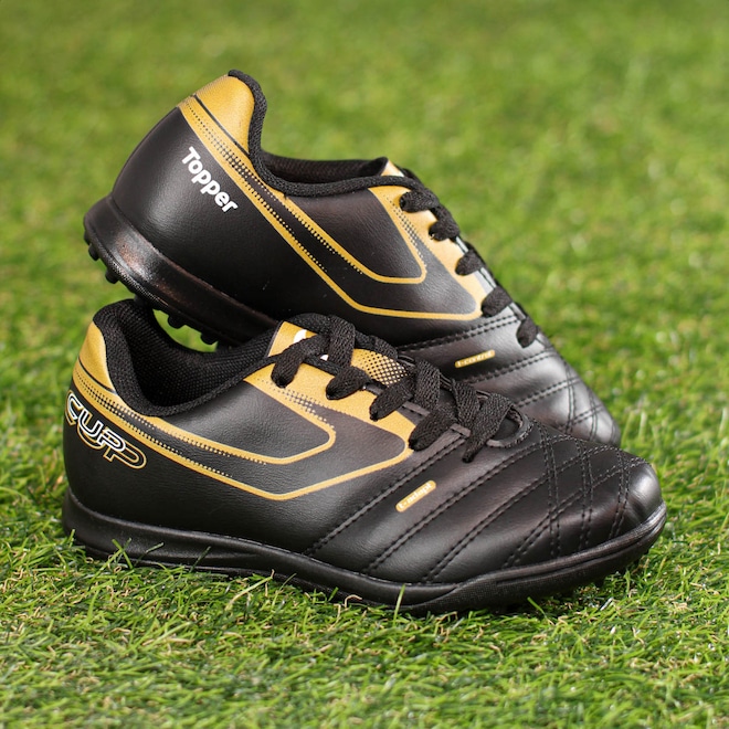 Leve o controle e o estilo para os gramados! Chuteira Topper Society Cup VIII - Infantil Ficha Técnica: Marca: Topper Cabedal: Cabedal em sintético para resistência e flexibilidade Gênero: Infantil Palmilha: Têxtil Sola: Borracha Fechamento: Cadarço Estilo: Controle Trava: Sem Trava Tecnologias: Design leve para maior liberdade de movimento e cabedal macio para controle de bola Entressola: Solado projetado para grama sintética com excelente aderência e tração Indicação: Partidas e treinos em campos de grama sintética Detalhes: Símbolo da marca nas laterais da chuteira Garanta ao seu pequeno craque, jogadas precisas e muito estilo com a Chuteira Topper Society Cup VIII. Porque investir: Desenvolvida para crianças que não abrem mão de desempenho, ela conta com cabedal em material sintético que oferece resistência e conforto. Seu solado em borracha com tração ideal para gramados sintéticos proporciona segurança e estabilidade em cada movimento. Leve e confortável, ela permite agilidade e controle da bola do início ao fim do jogo. Aposte no seu talento e jogue com quem entende do assunto. Conteúdo da embalagem: 1 par de Chuteira Topper Society Cup VIII - Infantil
