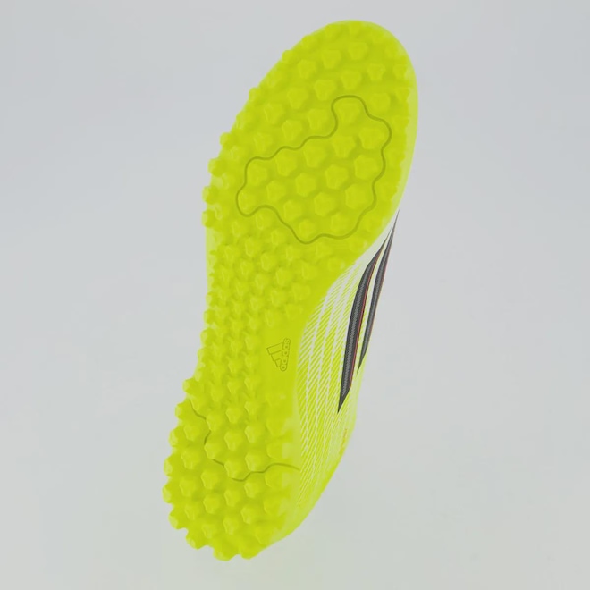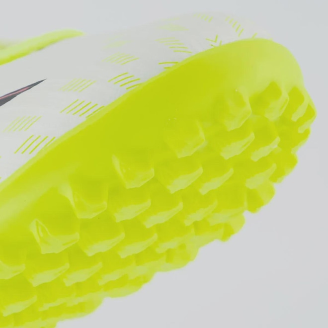 Tecnologia Sprintgrid: Utiliza impressões 3D em pontos estratégicos do cabedal para otimizar o controle e a aderência com a bola durante jogadas velozes. Fiberskin: Cabedal sintético de camadas leves com impressões táteis que oferece suporte, durabilidade e um toque de bola aprimorado. Composição Cabedal (Parte superior): Confeccionado em material sintético Palmilha: Em EVA e removível; facilita na higienização do produto Forro: Revestimento em material têxtil acolchoado Solado: Emborrachado e antiderrapante Lingueta: Fina e flexível Cor Predominante: Amarela Indicado para: Futsal Origem: Nacional Gênero: Masculino Ajuste: Cadarço Peso Aproximado: 600g o par n° 40