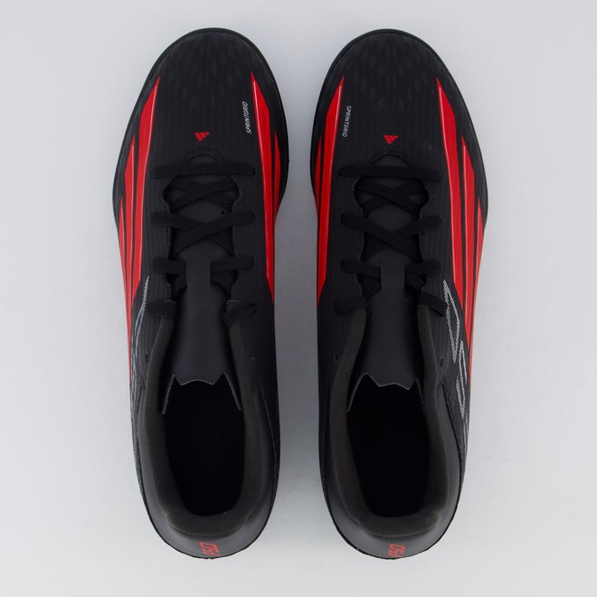 Tecnologia Sprintgrid: Utiliza impressões 3D em pontos estratégicos do cabedal para otimizar o controle e a aderência com a bola durante jogadas velozes. Fiberskin: Cabedal sintético de camadas leves com impressões táteis que oferece suporte, durabilidade e um toque de bola aprimorado. Composição Cabedal (Parte superior): Confeccionado em material sintético Palmilha: Em EVA e removível; facilita na higienização do produto Forro: Revestimento em material têxtil com alcochoamento reforçado Solado: Emborrachado e antiderrapante, colado Lingueta: Fina e flexível Cor Predominante: Preta Indicado para: Society Origem: Nacional Gênero: Masculino Ajuste: Cadarço Peso Aproximado: 590g o par n° 40