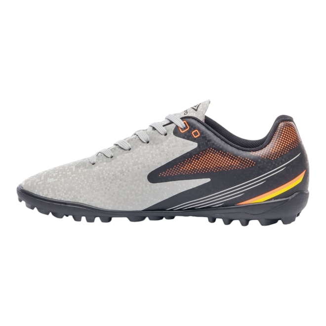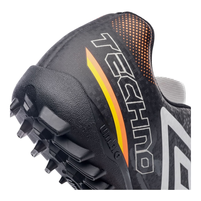 A Chuteira Society Umbro Techno II apresenta design com efeito pixel em fosco ? brilho. Seu cabedal é confeccionado em material laminado com textura plana e contraste, combinado com arte gráfica em serigrafia e elementos em cores contrastantes. Possui palmilha interna macia, confeccionada em EVA e forrada em tecido, garantindo conforto durante o jogo. O solado de futebol society HG é feito em PVC com sistema de travas em barra e chevron. CABEDAL: 100% - SINTETICO FORRO: 100% - POLIESTER PALMILHA: 90% - EVA 10% - POLIESTER SOLA: 100% - PVC.