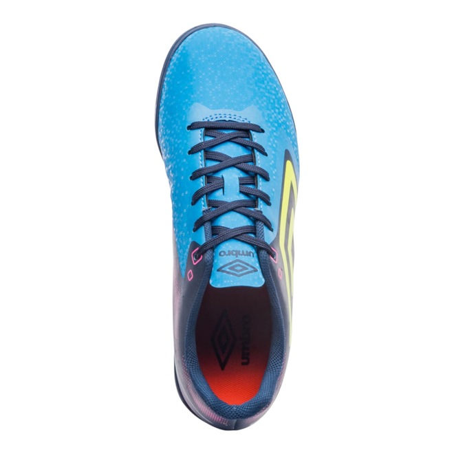 A Chuteira Society Umbro Techno II apresenta design com efeito pixel em fosco ? brilho. Seu cabedal é confeccionado em material laminado com textura plana e contraste, combinado com arte gráfica em serigrafia e elementos em cores contrastantes. Possui palmilha interna macia, confeccionada em EVA e forrada em tecido, garantindo conforto durante o jogo. O solado de futebol society HG é feito em PVC com sistema de travas em barra e chevron. CABEDAL: 100% - SINTETICO FORRO: 100% - POLIESTER PALMILHA: 90% - EVA 10% - POLIESTER SOLA: 100% - PVC.