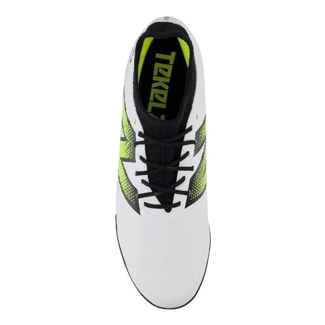 A Chuteira Society New Balance Tekela Magique TF V4+ Unissex foi desenvolvida para controle preciso e agilidade no gramado sintético: cabedal leve em material sintético com zonas têxteis garante ajuste seguro e toque limpo na bola, enquanto a placa TF com borracha e EVA entrega tração estável, respostas rápidas e conforto do início ao fim do jogo.