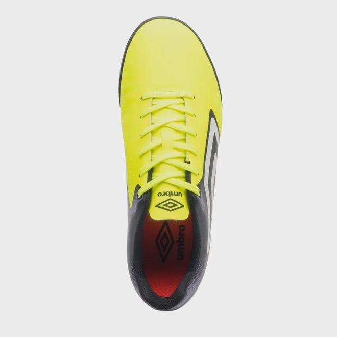 A Chuteira Society Umbro Techno II apresenta design com efeito pixel em fosco ? brilho. Seu cabedal é confeccionado em material laminado com textura plana e contraste, combinado com arte gráfica em serigrafia e elementos em cores contrastantes. Possui palmilha interna macia, confeccionada em EVA e forrada em tecido, garantindo conforto durante o jogo. O solado de futebol society HG é feito em PVC com sistema de travas em barra e chevron.