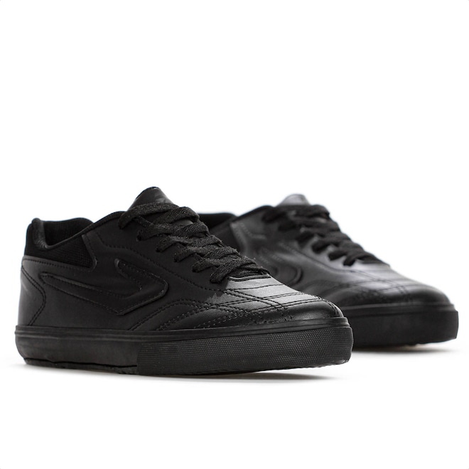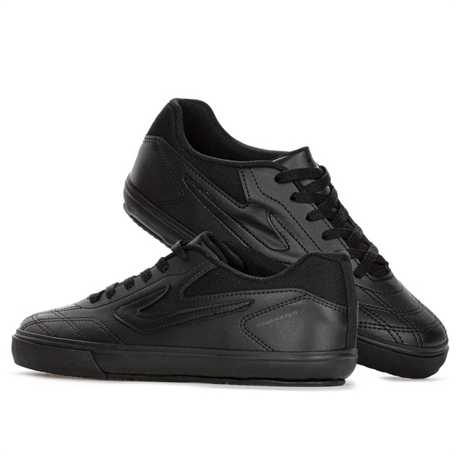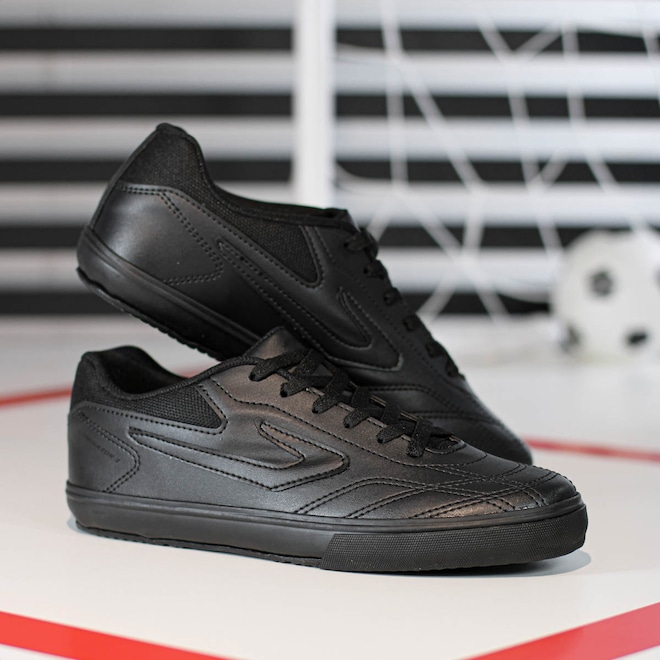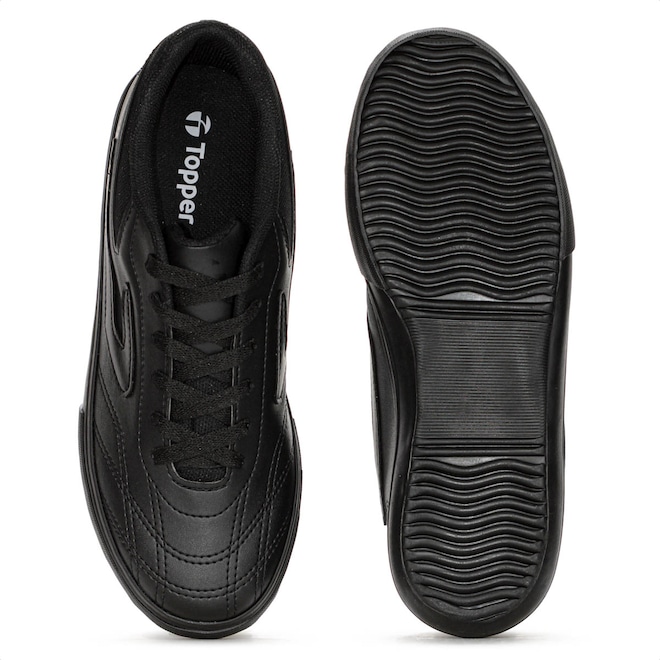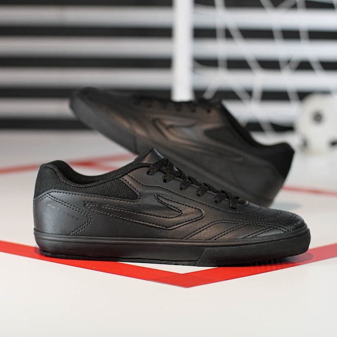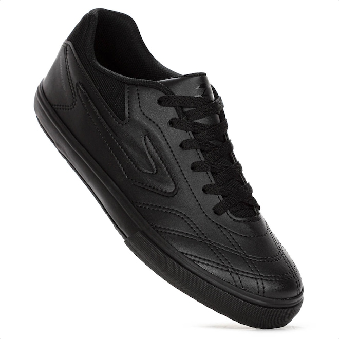 Domine as quadras com precisão e segurança! Chuteira Topper Futsal Dominador 3 All Black - Masculino Ficha Técnica: Marca: Topper Cor: All Black Gênero: Masculino Indicado: Futsal Cabedal: Sintético resistente e durável com calcanhar acolchoado Palmilha: EVA - removível Sola: Borracha antiderrapante Fechamento: Cadarço Amortecimento: Leve Estabilidade: Alta para movimentos laterais Tecnologias: Camada de EVA na entressola para absorção de impacto Entressola: EVA para amortecimento leve Detalhes: Modelo clássico, com logotipo da marca nas laterais, sem trava - ideal para quadras indoor Brilhe dentro das quatro linhas com a Chuteira Topper Dominador 3. Porque investir: O cabedal sintético resistente oferece durabilidade para jogos intensos, enquanto o calcanhar acolchoado garante mais conforto e firmeza nos movimentos. A entressola com camada de EVA proporciona amortecimento leve, e o solado em borracha antiderrapante entrega tração e segurança para dribles rápidos, passes precisos e finalizações potentes. Ideal para quem quer desempenho, estabilidade e confiança em cada jogada. Entre em quadra preparado para marcar a diferença. Conteúdo da embalagem: 1 par de Chuteira Topper Futsal Dominador 3 All Black - Masculino