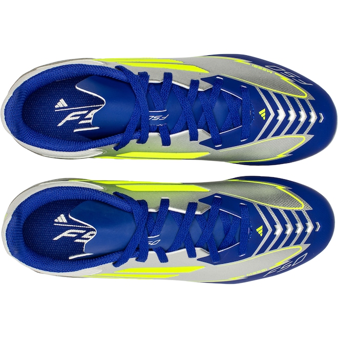 Apresentamos a Chuteira de Campo adidas F50 League Júnior, inspirada no lendário Lionel Messi e projetada para jovens talentos que buscam velocidade e precisão em campo.