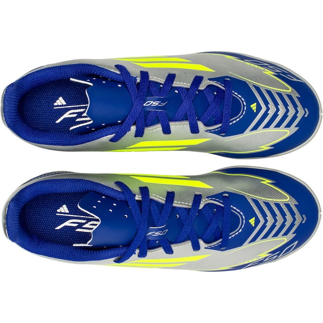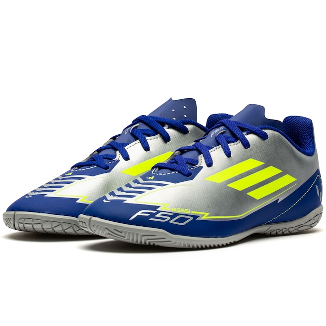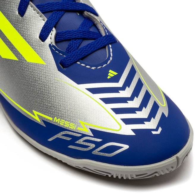 A Chuteira de Futsal adidas F50 Club Júnior combina a velocidade lendária da linha F50 com a genialidade de Lionel Messi, trazendo um modelo desenvolvido para pequenos craques que querem brilhar nas quadras.