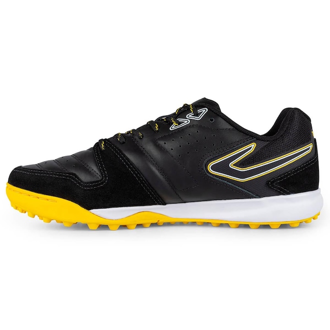 Domine o campo com a Chuteira Society Topper Dominator Pro V! Aliada aos jogadores que gostam de rabiscar dentro das quatro linhas, essa chuteira society Topper é desenvolvida com travas estrategicamente posicionadas que proporcionam tração em contato com o gramado e permitem mudanças de direção rápidas e precisas. Além disso, o design moderno garante um visual ousado na hora da partida. Eleve seu jogo com essa chuteira society!