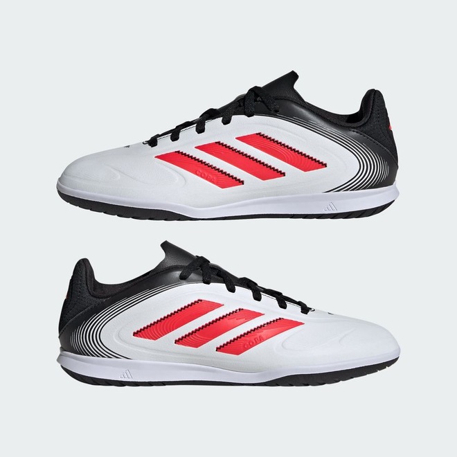 Jogue o jogo bonito do seu jeito com a chuteira infantil adidas Copa Pure 3 Club, projetada para conforto e conexão. O cabedal sintético macio vem com uma textura de grão com efeito de couro para um visual elegante e uma estampa 3D na ponta do pé, para um toque confiante. Por sua vez, o solado de borracha aderente permite um futebol de cultura em superfícies lisas indoor.