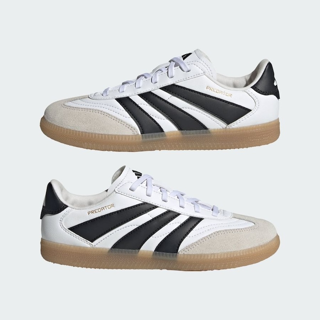 Entre em campo em qualquer jogo sabendo que você vai marcar gols com a chuteira infantil adidas Predator Freestyle. Calce este tênis inspirado no futebol nas quadras de futsal ou além das quatro linhas. Onde quer que você o calce, ele mantém você confortável com um cabedal ventilado em malha elástica e suede. Por baixo, a entressola Lightstrike amortecida e o solado Samba clássico garantem uma corrida suave.