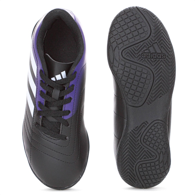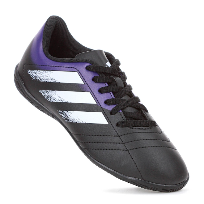 Estabilidade e conforto para dominar a quadra! Chuteira Adidas Futsal Rabisco Jr Preto Branco e Roxo - Juvenil Ficha Técnica: Marca: Adidas Cor: Preto, branco e roxo Cabedal: Sintético macio e flexível Indicado: Futsal Gênero: Unissex Palmilha: Têxtil Sola: Borracha antiderrapante Fechamento: Cadarço Amortecimento: Convencional Estabilidade: Alta Tecnologias: Solado non-marking para máxima aderência em quadras indoor e outdoor Entressola: Convencional Indicação: Futsal, treinos e jogos escolares Detalhes: Visual moderno com as clássicas três listras Adidas nas laterais A nova geração pede atitude e agilidade - e a Chuteira Adidas Rabisco Jr entrega tudo isso com estilo. Porque investir: Feita para os craques mirins, ela combina um cabedal resistente e flexível com solado antiderrapante, ideal para garantir segurança nos dribles e nos chutes ao gol. Com visual marcante e performance de alto nível, é perfeita para quem quer brilhar nas quadras desde cedo. Conteúdo da embalagem: 1 par de Chuteira Adidas Futsal Rabisco Jr Preto Branco e Roxo - Juvenil