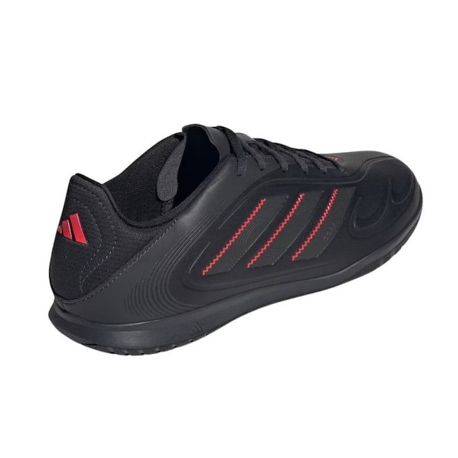 INFORMAÇÕES TÉCNICAS: Fechamento: Cadarço Cabedal: Sintético com textura de grão e efeito de couro, com estampa 3D na ponta do pé Solado: Borracha non-marking, ideal para superfícies artificiais de society Material: Confeccionada parcialmente com materiais reciclados Indicado para: Futebol (Indoor) Gênero: Masculino Origem: (não especificado)