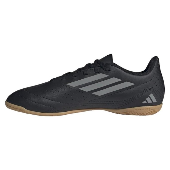 O calcanhar com formato anatômico mantém os pés firmes, e o solado non-marking evita marcas na quadra.