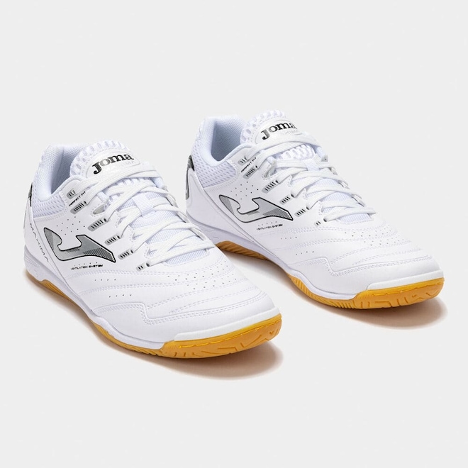 Chuteiras de futebol de salão. Conforto e controle necessários para dar os primeiros passos no jogo. Cabedal feito majoritariamente em material sintético, um material acessível que proporciona resistência e bom contato com a bola, perfeito para iniciar no futsal. Para melhorar a ventilação do suor, foram incluídas pequenas perfurações do sistema VTS.