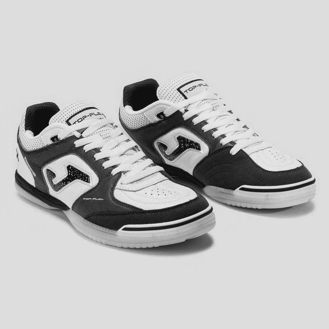 A Chuteira Joma Top Flex Futsal possui um cabedal em couro natural que proporciona maior conforto aos seus pés, além de pontos estratégicos reforçados em camurça para melhorar a precisão do chute e aumentar a durabilidade. Possui também, palmilha em EVA removível aliada a uma outra palmilha fixa costurada na base da chuteira que permite melhor acomodação ao pé do jogador, uma entressola que combina amortecimento e flexibilidade na medida exata, e um solado super-resistente e flexível, sendo assim, um ícone do futsal!