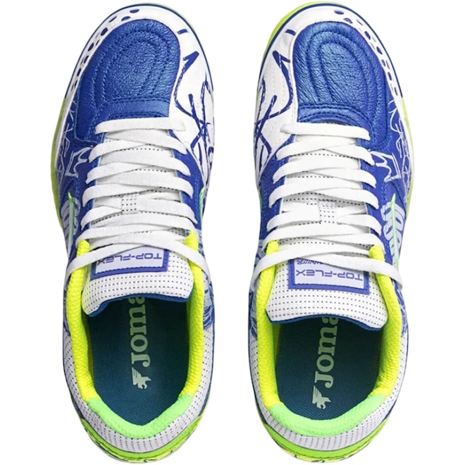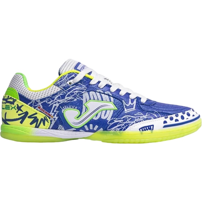 A Chuteira Joma Top Flex Futsal possui um cabedal em couro natural que proporciona maior conforto aos seus pés, além de pontos estratégicos reforçados em camurça para melhorar a precisão do chute e aumentar a durabilidade. Possui também, palmilha em EVA removível aliada a uma outra palmilha fixa costurada na base da chuteira que permite melhor acomodação ao pé do jogador, uma entressola que combina amortecimento e flexibilidade na medida exata, e um solado super-resistente e flexível, sendo assim, um ícone do futsal!