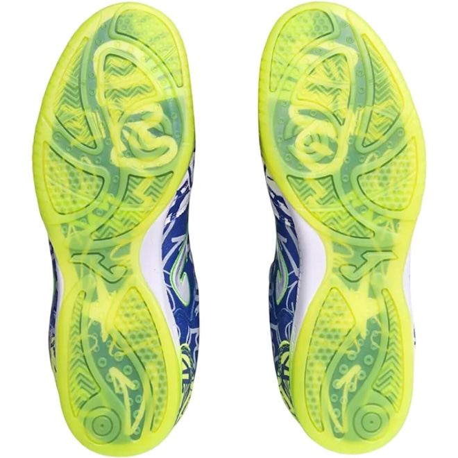 -ROTATION: Sistema com formas geométricas que evita lesões e proporcionam estabilidade necessária em deslocamentos e mudanças de direção comuns em uma partida de futsal. A Joma é conhecida por possuir essa tecnologia não só na planta do pé, mas também no calcanhar.