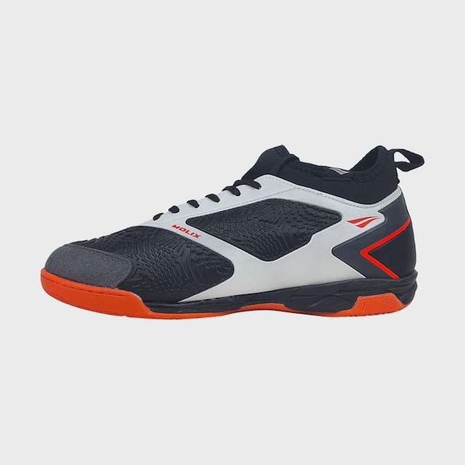 A parte superior traz a tecnologia Molix, um sistema que proporciona ajuste tipo meia, oferecendo encaixe firme e confortável que impede que o pé deslize dentro da chuteira, aumentando o controle e a precisão a cada movimento.