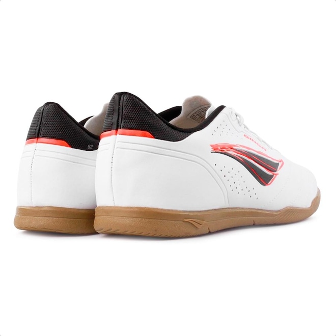 O solado emborrachado vem equipado com a tecnologia Non-Marking, que proporciona ótima tração em pisos indoor sem deixar marcas. A tecnologia Hiperflex, por sua vez, traz canaletas estrategicamente posicionadas para oferecer maior flexibilidade e facilitar os movimentos naturais do pé.