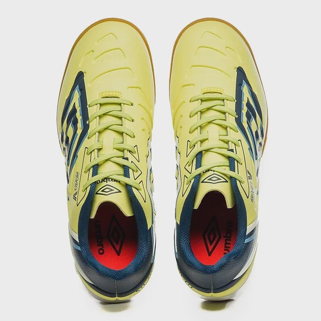 A Chuteira Umbro Sala V Futsal é para quem sabe o que faz com a bola dentro de quadra. Seu cabedal é confeccionado em material sintético. Seu solado é feito de borracha e EVA, com o sistema antiderrapante; Seu fecho é em cadarço e forro em poliéster. Seu design é predominante na cor verde limão e logo na cor branca. Não perca tempo e garanta já a Chuteira Umbro Sala V!