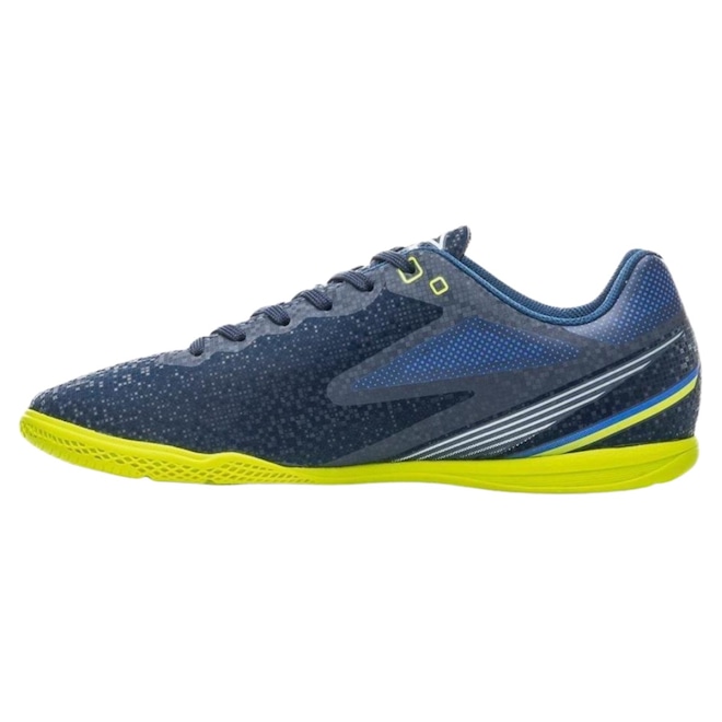 Sinta o conforto da palmilha acolchoada e a flexibilidade da lingueta fina, que se adaptam perfeitamente ao seu pé. Com forro têxtil e reforço acolchoado, cada lance será de pura confiança, mantendo você focado no jogo. Esta chuteira é a escolha ideal para quem busca excelência no futsal.