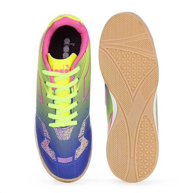 Chuteira Diadora Futsal Nazionale Elite II Amarelo Neon, Azul e Rosa - Masculino: Agilidade, conforto e estilo vibrante nas quadras! Ficha Técnica: Marca: Diadora Modelo: Chuteira Futsal Cor: Amarelo Neon, Azul e Rosa Material: Sintético resistente Forro: Tecido respirável Palmilha: EVA para amortecimento Entressola: EVA Solado: EVA com base de borracha antiderrapante Indicação de uso: Futsal Detalhes: Grafismos estão estampados por todo cabedal; Nazionale Elite II e Diadora estampados na traseira Conteúdo da embalagem: 1 par de Chuteira Diadora Futsal Nazionale Elite II Amarelo Neon, Azul e Rosa - Masculino Brilhe nas quadras de futsal com a Diadora Nazionale Elite II. Seu design moderno e agressivo chama a atenção, enquanto o material sintético resistente e a palmilha em EVA oferecem ajuste confortável e absorção de impactos. O solado antiderrapante garante estabilidade e agilidade em movimentos rápidos. Escolha o melhor para se destacar em cada jogada e transforme sua performance com estilo e segurança.