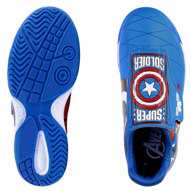 Seu filho será o destaque das quadras indoor com esta chuteira Infanto Juvenil temática com os heróis da Marvel.
