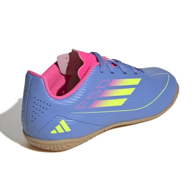 Ultrapasse seus limites com a leveza do calçado adidas F50, projetado para velocidade. Esta chuteira infantil Club mantém você confortável em movimento com o cabedal de suporte Fiberskin e a língua perfurada. Por baixo, o solado de borracha non-marking ajuda você a atingir extrema agilidade em superfícies lisas indoor.