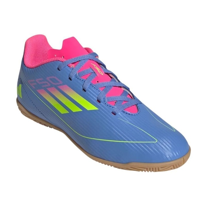 Ultrapasse seus limites com a leveza e agilidade da Chuteira F50 Club Futsal Infantil da Adidas. Ideal para jogos em quadras indoor, o modelo combina conforto e desempenho com seu cabedal em Fiberskin, proporcionando ajuste firme e suporte em cada movimento.