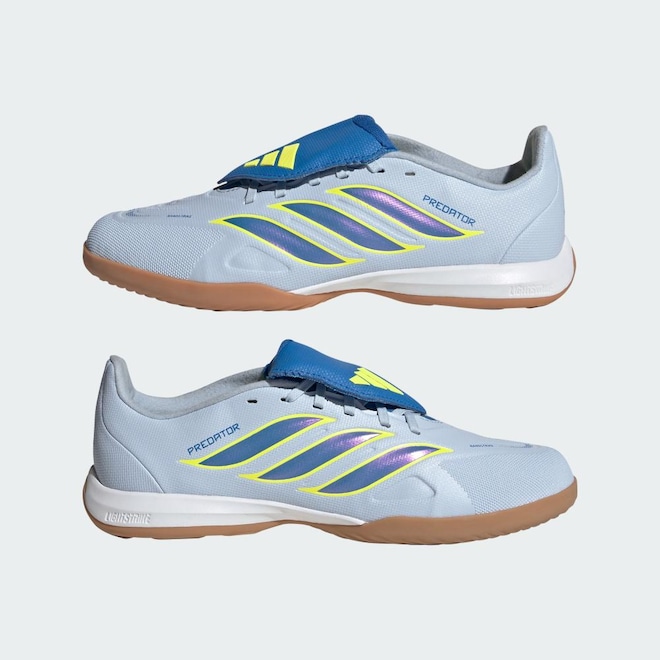 A Chuteira de Futsal Predator League de Língua Dobrável Infantil foi projetada para inspirar os jovens atletas a atingirem todo o seu potencial na quadra, usando uma combinação de tecnologia inovadora e design elegante. Com cabedal de material sintético e têxtil, ela é confortável e oferece suporte, permitindo que as crianças se concentrem em suas habilidades. A língua dobrável e o fecho de cadarço proporcionam uma modelagem firme. NANOSTRIKE: sinergia reinventada entre ajuste e tecnologia de aderência. Cabedal em malha elástica para proporcionar maciez e leveza extras; com uma sobreposição háptica integrada para maior precisão de chutes. Com um solado de borracha projetado para superfícies indoor lisas, esta chuteira proporciona aderência e estabilidade, ajudando as crianças a se movimentarem com confiança para que possam assumir o controle de sua própria partida.