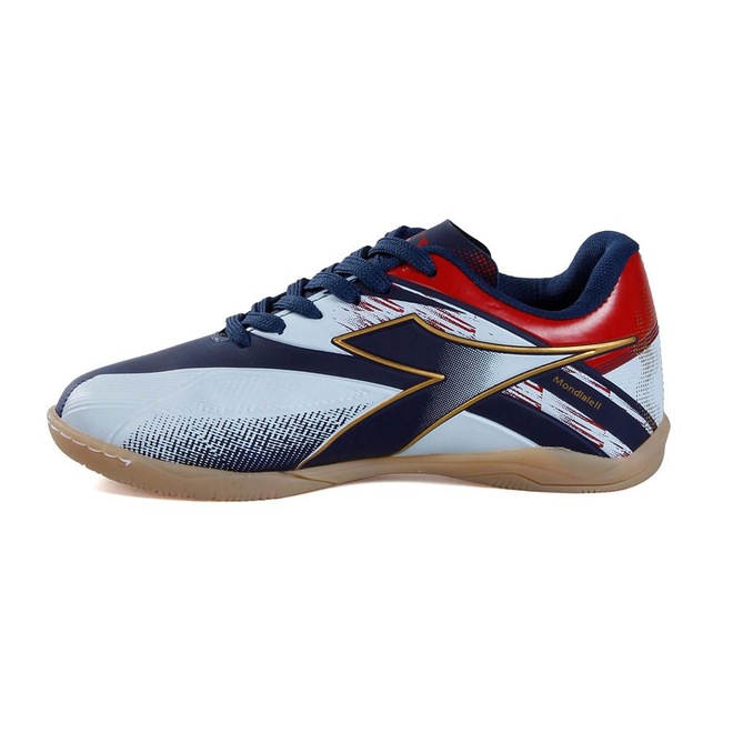 A Diadora Mondiale Futsal Marinho e Branco é indicada para quadras indoor e superfícies lisas, entregando excelente controle e desempenho técnico.