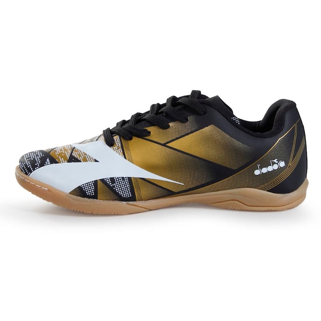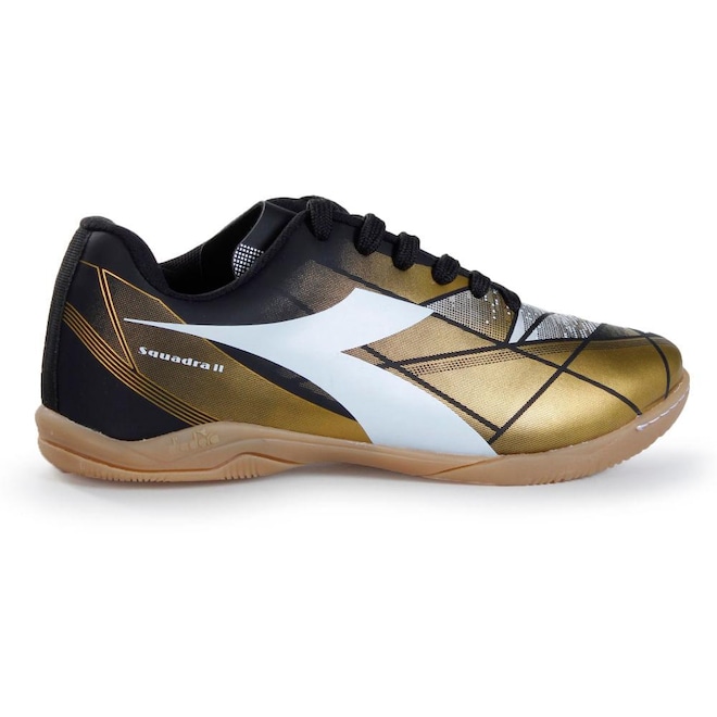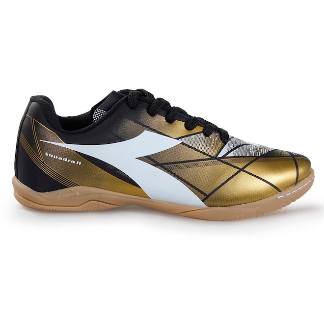 Chuteira Infantil Diadora Squadra II Futsal Preto e Dourado:
