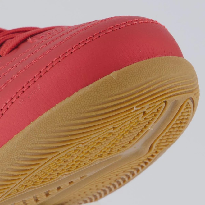Tecnologia Non-Marking: Borracha que não deixa marcas e proporciona excelente tração em todas as superfícies indoor Composição Cabedal (parte superior): Confeccionado em material sintético Forro: Material têxtil com revestimento acolchoado no calcanhar Palmilha: EVA e removível, facilita no momento da higienização Solado: Borracha antiderrapante Cor Predominante: Vermelha Indicada para: Futsal Lingueta: Integrada Origem: Nacional Gênero: Juvenil Ajuste: Cadarço Peso aproximado: 440g o par nº 33