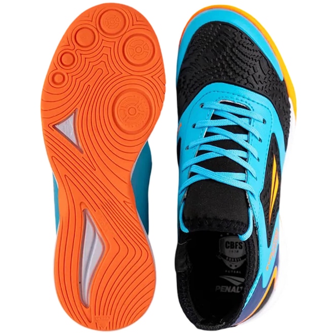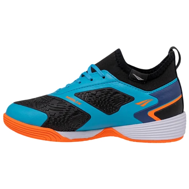 Seu cabedal em material sintético proporciona maior durabilidade e controle de bola, enquanto a palmilha em EVA oferece amortecimento extra a cada passo. O solado de borracha com tecnologia Ultra Grip e Non-Marking garante tração superior sem marcar o piso, além do sistema Rotate, que auxilia nas mudanças de direção com mais agilidade.