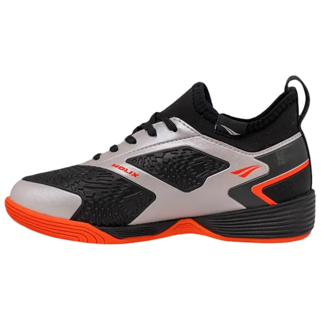 Seu cabedal em material sintético proporciona maior durabilidade e controle de bola, enquanto a palmilha em EVA oferece amortecimento extra a cada passo. O solado de borracha com tecnologia Ultra Grip e Non-Marking garante tração superior sem marcar o piso, além do sistema Rotate, que auxilia nas mudanças de direção com mais agilidade.