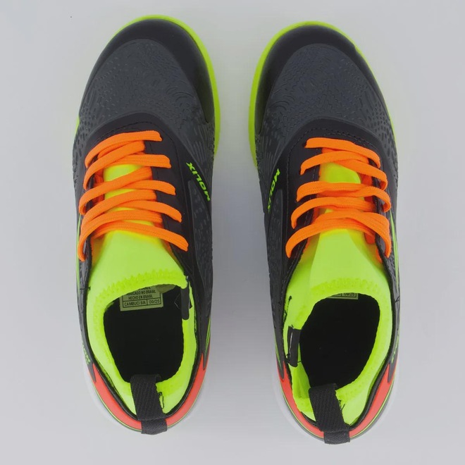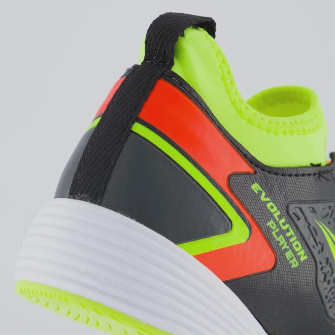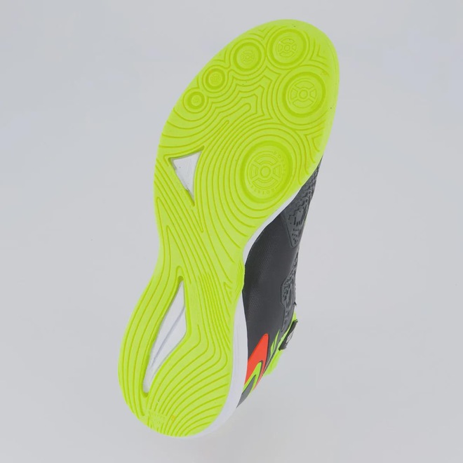 TecnologiasNeo Cushion: Tecnologia aplicada na entressola que a torna mais macia que as tradicionais de EVA, potencializando o amortecimento de impactos. Possui alta memória celular que proporciona maior resistência e rápida recuperação das características iniciais de amortecimento.Locker: "Bota" que permite ajuste mais anatômico e maior conforto.Rotate: Ponto de giro que auxilia a movimentação.Non-Marking: Uma borracha que não marca as quadras e proporciona excelente tração.Ultra Grip: Design que confere maior aderência para o solado, em todos os tipos de quadra.Molix 360: Exclusiva tecnologia que garante controle e domínio de bola durante o jogo.Composição cabedal (parte superior): Têxtil com sobreposição em sintéticoPalmilha: PU conformada e removível; facilita a higienizaçãoSolado: Emborrachado e antiderrapante, coladoEntressola: EVA macio e confortávelCor predominante: VerdeForro: Material têxtilIndicado para: FutsalLingueta: IntegradaOrigem: NacionalIdade: JuvenilAjuste: CadarçoPeso aproximado: 430g o par nº 34