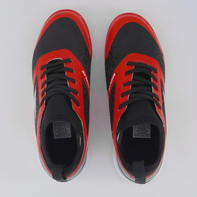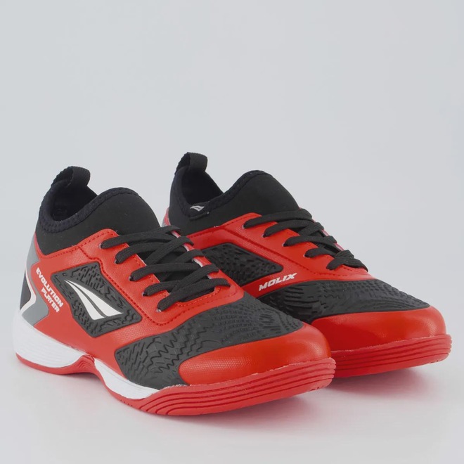 TecnologiasNeo Cushion: Tecnologia aplicada na entressola que a torna mais macia que as tradicionais de EVA, potencializando o amortecimento de impactos. Possui alta memória celular que proporciona maior resistência e rápida recuperação das características iniciais de amortecimento.Locker: "Bota" que permite ajuste mais anatômico e maior conforto.Rotate: Ponto de giro que auxilia a movimentação.Non-Marking: Uma borracha que não marca as quadras e proporciona excelente tração.Ultra Grip: Design que confere maior aderência para o solado, em todos os tipos de quadra.Molix 360: Exclusiva tecnologia que garante controle e domínio de bola durante o jogo.Composição cabedal (parte superior): Têxtil com sobreposição em sintéticoPalmilha: PU conformada e removível; facilita a higienizaçãoSolado: Emborrachado e antiderrapanteEntressola: EVA macio e confortávelCor predominante: BrancaForro: Material têxtilIndicado para: FutsalLingueta: IntegradaOrigem: NacionalIdade: JuvenilAjuste: CadarçoPeso aproximado: 440g o par nº 34