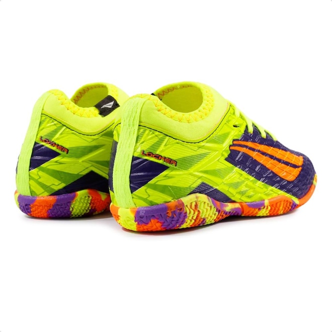 Fabricada com materiais resistentes à abrasão, essa chuteira garante durabilidade e conforto durante toda a partida. Ideal para futsal escolar, treinos ou jogos com os amigos.